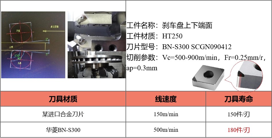 CBN修光刃刀片精車剎車盤的案例參數: